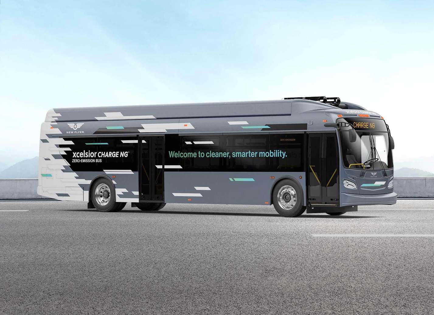 New Flyer’s Xcelsior CHARGE NG™ battery-electric buses provide up to 525kWh of power and 250 miles of range on a single charge. Introduced in 2021, the Xcelsior CHARGE NG™ bus incorporates three distinct technology advancements, including high-energy batteries that extend range up to 13%, advanced protective battery packaging for easy install and simpler serviceability, and a new lightweight electric traction drive system with up to 90% energy recovery. For more information, visit newflyer.com/ng.